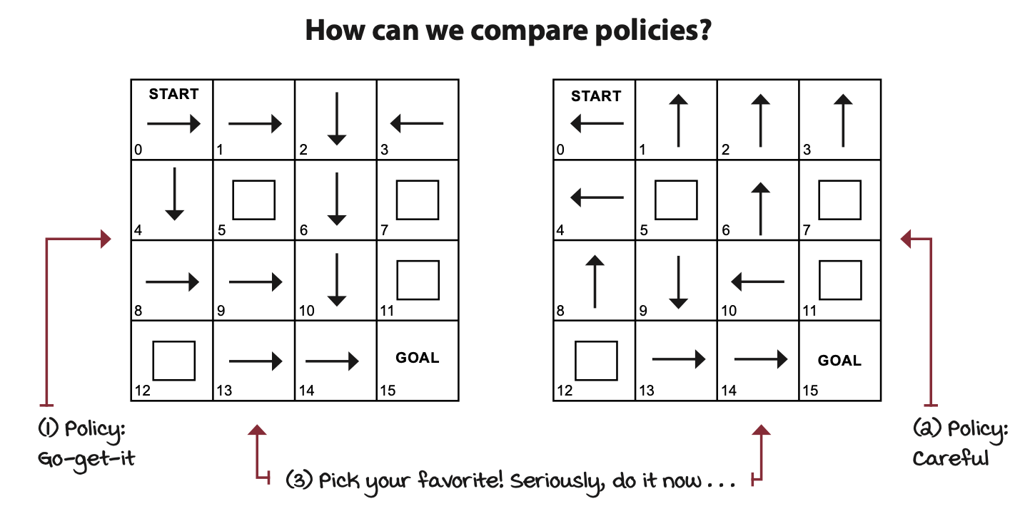 현재 정책을 평가할 수 있는 function들이다. 현재 상태에서 모든 상황을 고려한 기댓값(V-function), 특정 행동을 선택했을 때의 기댓값(Q-function), 특정 행동이 다른 행동보다 얼마나 좋은지에 대한 평가(active-advatage function)