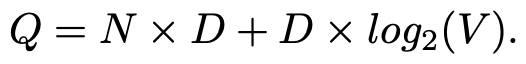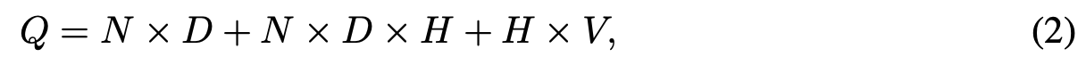 NNLM은 Projection layer -> hidden layer로 사이의 계산이 복잡하다는 단점이 있다. 인 경우에 Projection layer의 크기는 500~2000이 되며 hidden layer의 크기는 500~1000이 된다. 게다가 hidden layer -> output layer에서 Vocabulary안의 모든 단어에 대한 확률 값을 계산해야된다. 따라서 계산 복잡도는 아래와 같이 된다.