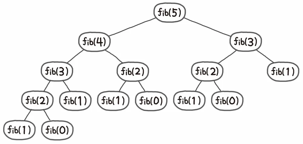 수식 그대로 함수를 만드는 방법이 있을 것이다. 그런데 이렇게 하면 100번째 피보나치 수를 구하기 위해 호출되는 함수의 횟수는 기하급수 적으로 증가한다.(약 7해, #,###경 #,###조 ... 번 이상 함수 호출, 컴퓨터도 죽는다.)