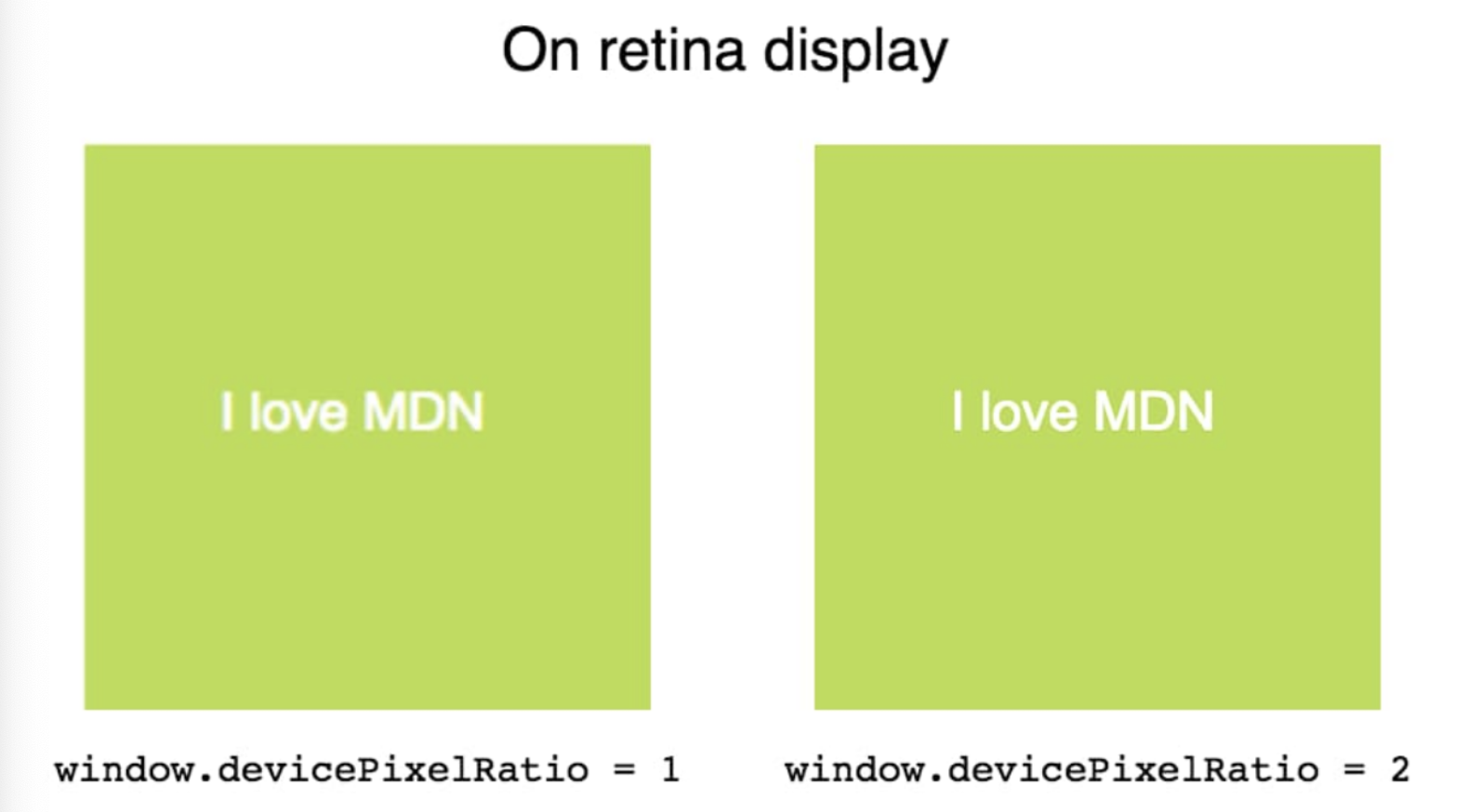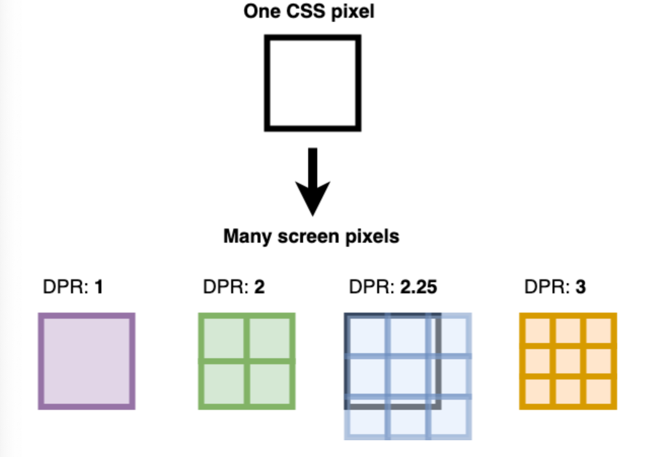 흐린 문제는 레티나 디스플레이와 같은 고해상도 디스플레이에서의 추가 픽셀이 필요해서 나타나는 현상으로, window 객체에 있는 devicePixelRatio를 통해 교정할 수 있다.