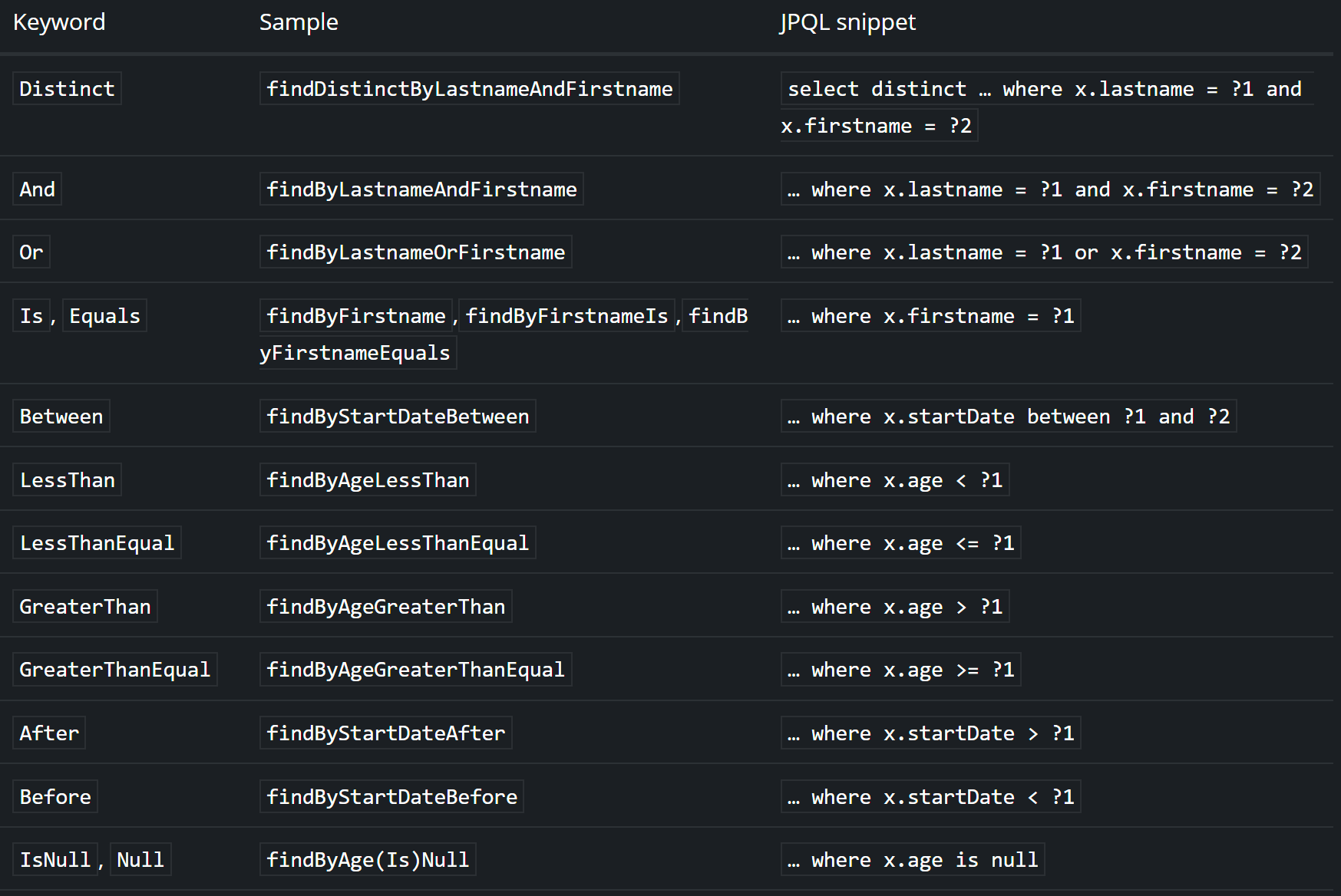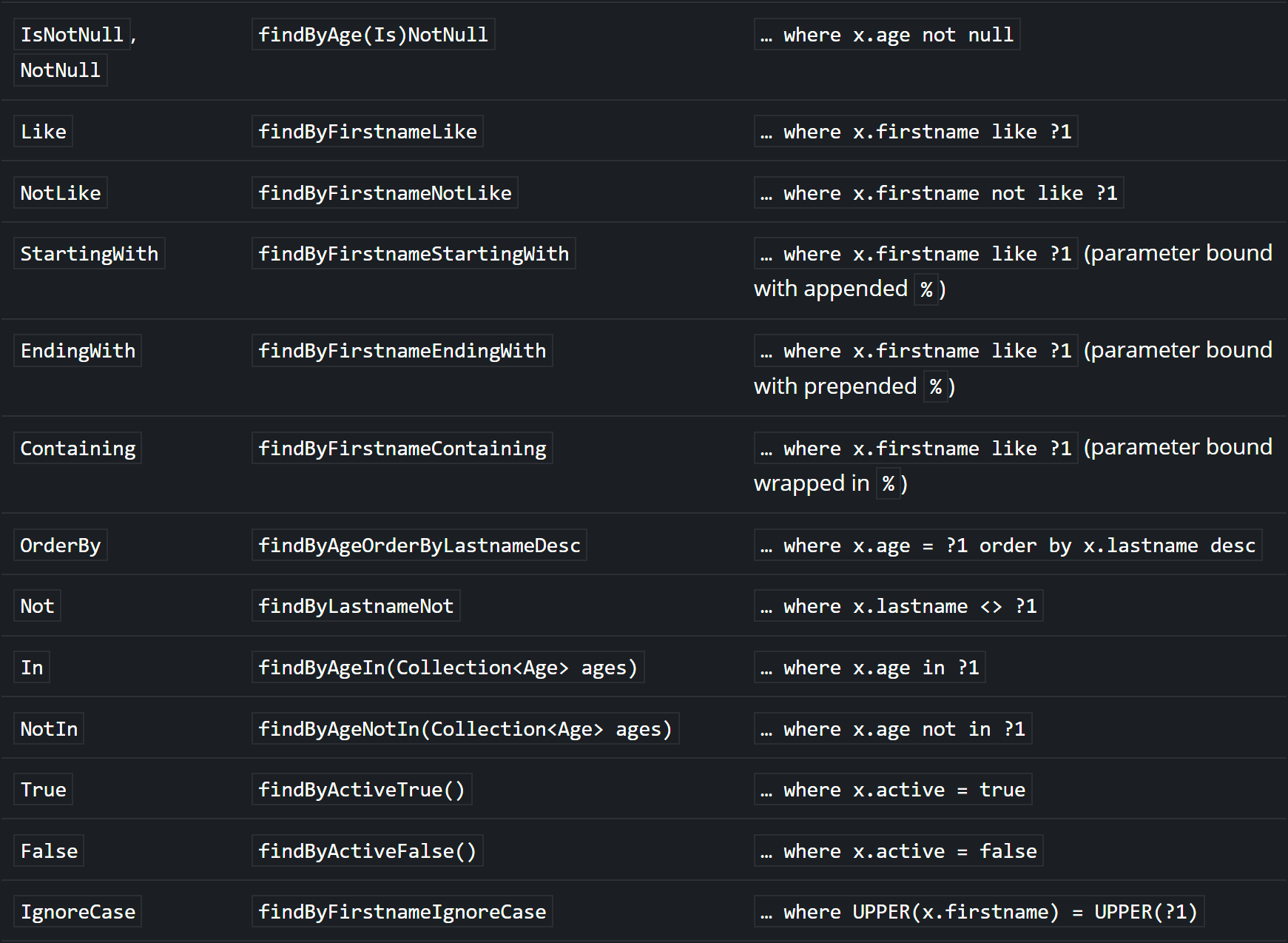 //메서드 이름으로 쿼리에서 특히 편리하다.