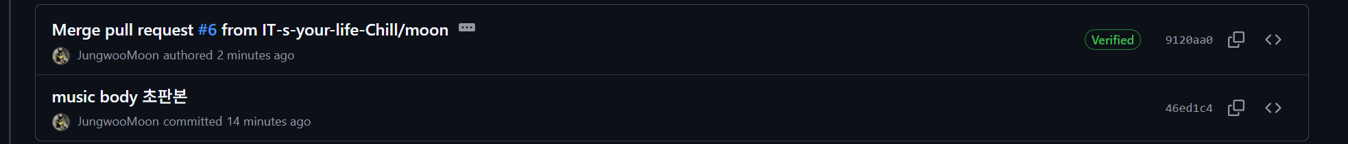 따라서 그 내용을 반영하기 위해 merge를 진행해줍니다.