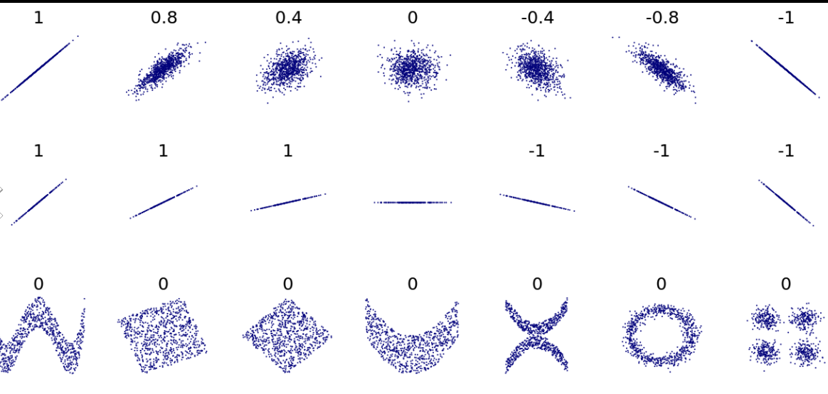 음의 상관관계는 반비례적 관계를 뜻 하며 양의 상관관계는 비례적 관계를 뜻 한다.