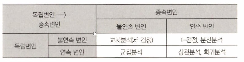 독립변인과 종속변인 모두 불연속 변인(명목척도 or 서열척도)이면 적용하는 통계방법
