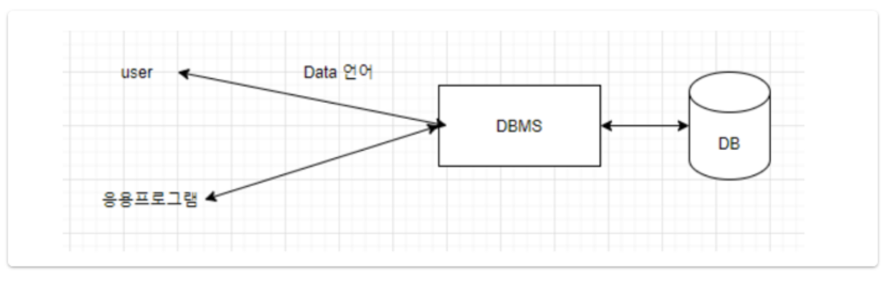 즉, 사용자(개발자)들은 DB에 직접 접근하여 데이터를 다루는 것이 아니라, DBMS의 도움으로 데이터를 다루고 변화시킬 수 있다.