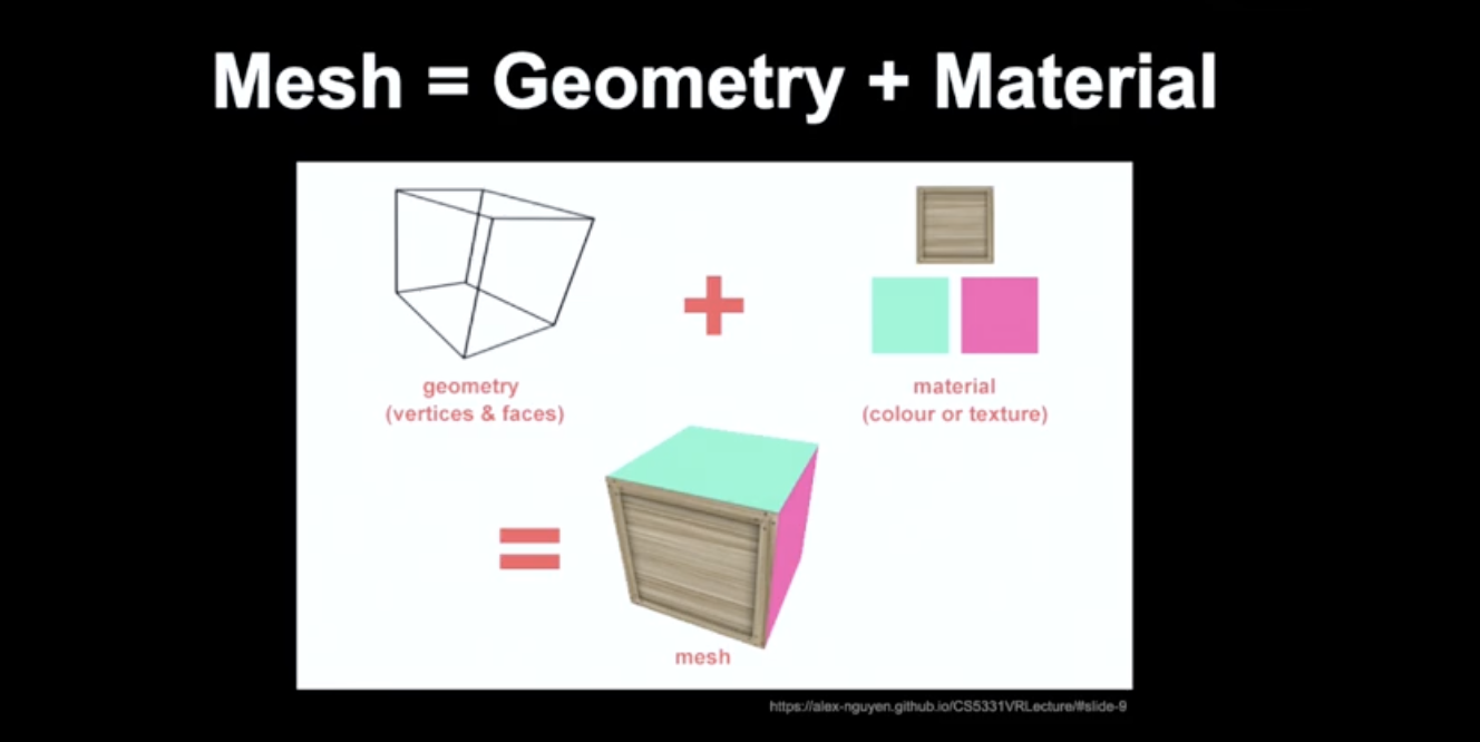 물체(Mesh)는 Geometry와 Material로 이루어져 있다.