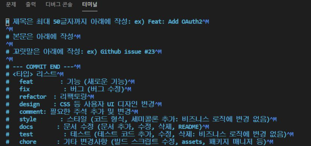 아래는 현재 필자가 쓰고있는 커밋 메시지 템플릿이다.