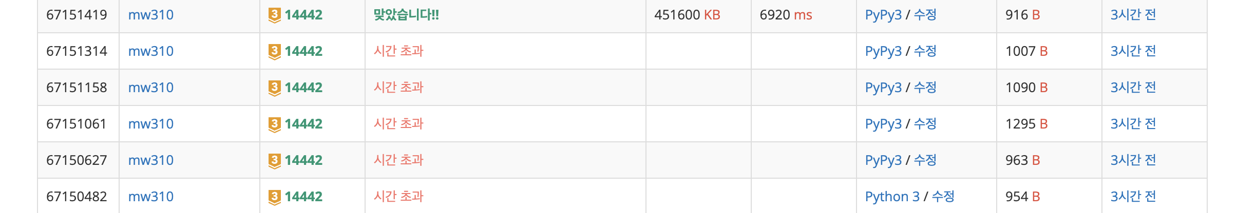 일단 찾아보니 이 문제를 python으로 푸신 분은 시간초과를 통과하신분은 못봤다... pypy3로 바꿔서 했지만 계속 시간 초과가 났는데