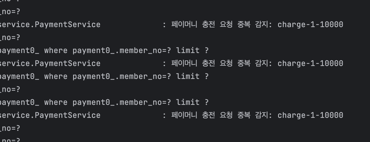 log.error("결제 관련 요청중 중복 감지: {}", key);
