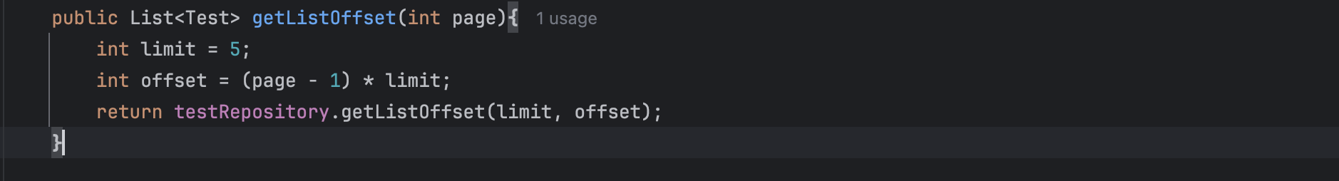 int offset = (page - 1) * limit;