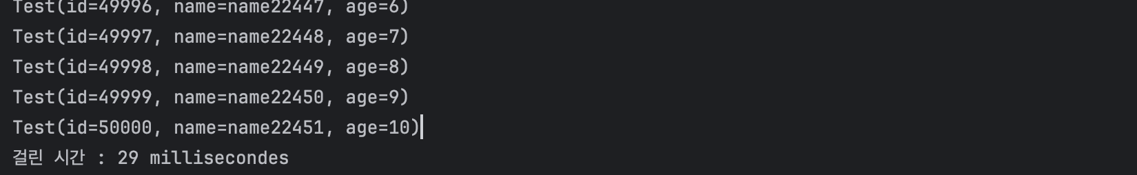 29의 시간이 걸린다 앞에서 했던 결과보다 더 빠르다. 데이터베이스에서 데이터를 필요한 부분만 가져와서 바로 보여준다.
