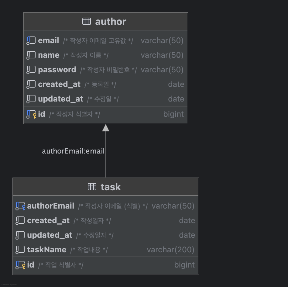 -- 외래키 제약조건 추가 (task 테이블에 author 테이블과 관계 설정)