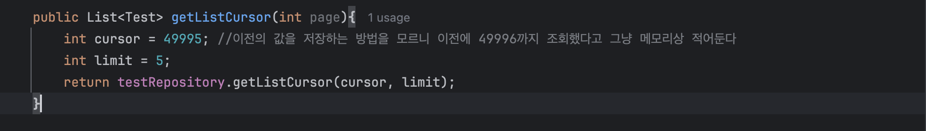 실제 커서를 구현하려면 이전에 값을 저장해야 하기 때문에 쿠키나 세션에 대해서 알아야 한다(전 아직 알지 못하기 때문에 맛만 봤다)