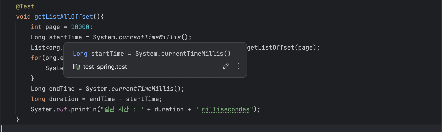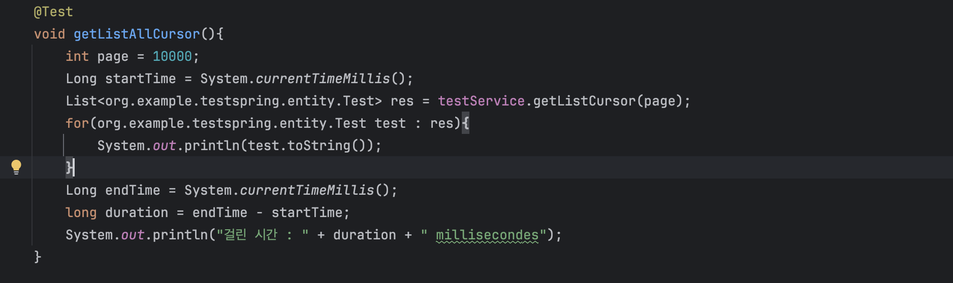 테스트 결과 코드