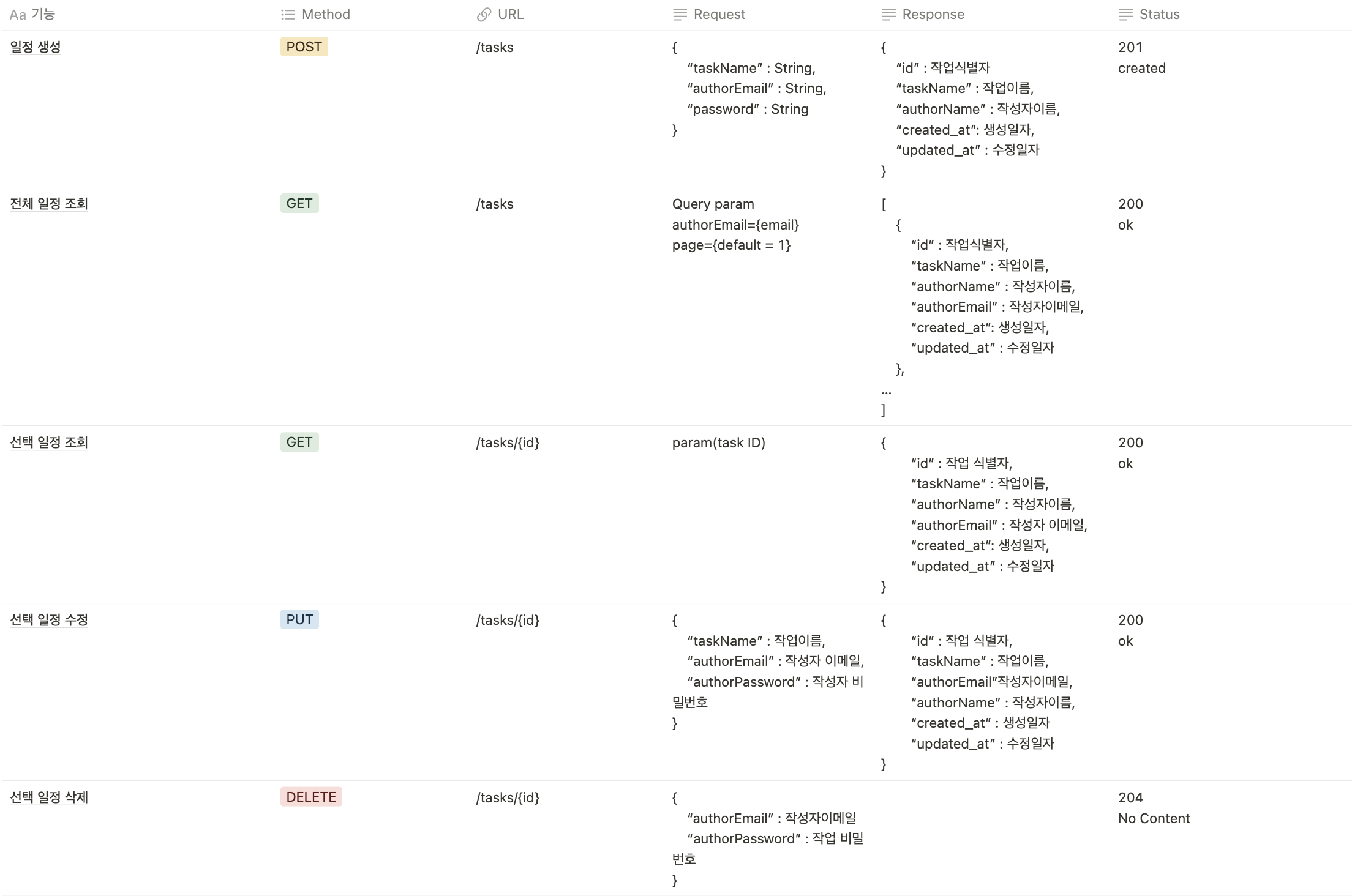 taskName varchar(200) not null comment "작업내용"