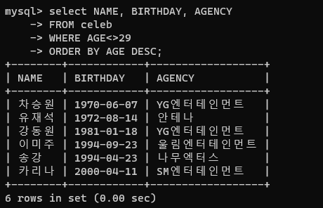 SELECT 문에서 데이터를 특정 컬럼을 기준으로 오름차순 혹은 내림차순 정렬하여 조회할 수 있습니다.