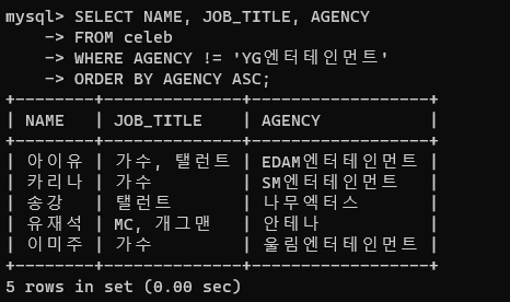 정렬의 기본값은 ASC 오름차순입니다.