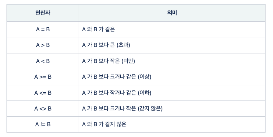 조건에 비교 연산자를 사용하여 데이터를 조회할 수 있습니다.