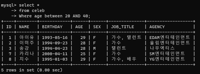 범위 사이의 값을 검색합니다. 따라서 BETWEEN을 사용하면 AND를 같이 사용하게 됩니다.