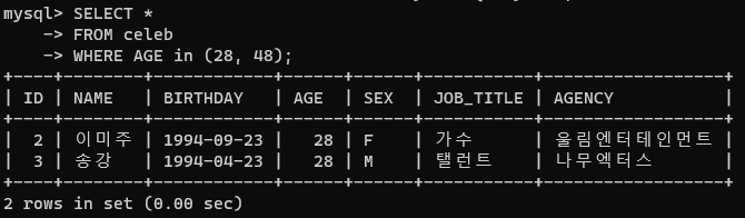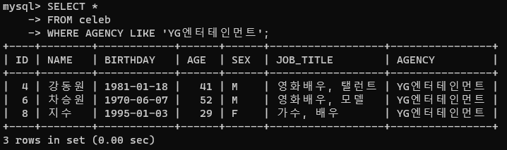 만약 가수만을 검색하고 싶다면 WHERE JOB_TITLE LIKE '가수' 라고 입력하면 됩니다.