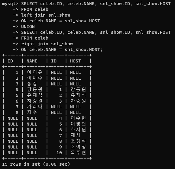 celeb테이블과 snl_host 테이블을 FULL OUTER JOIN 해주세요