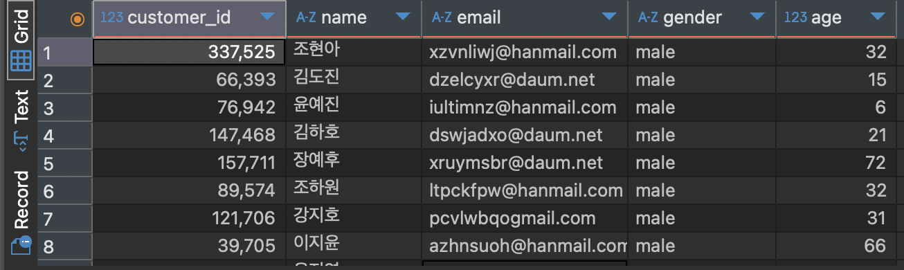 customer_id: 고객 번호 -- 이 컬럼 또한 데이터의 key 값이 될 것입니다.