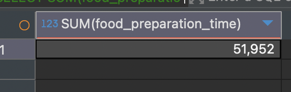 SELECT SUM(food_preparation_time) -- 음식 준비 시간의 총합