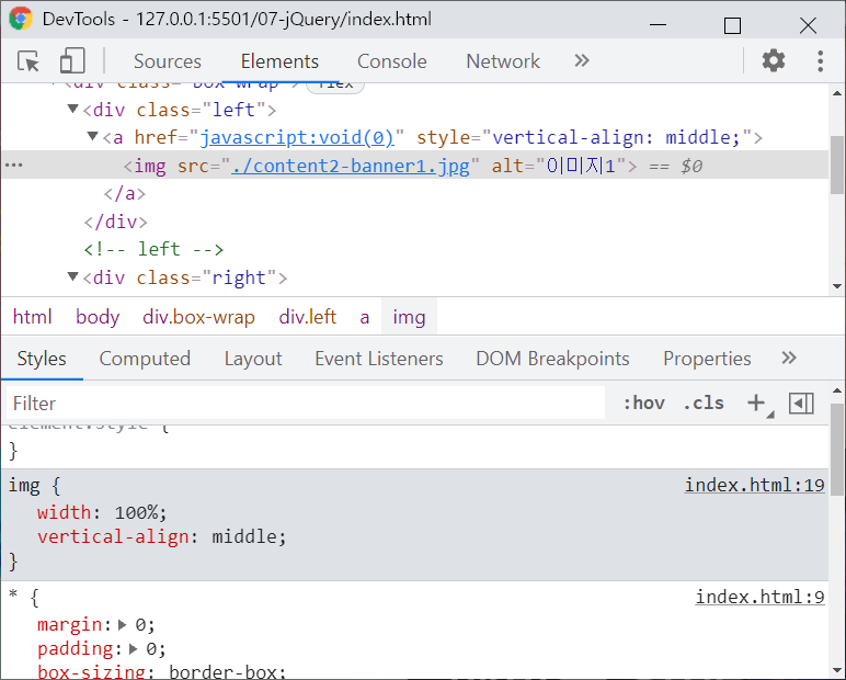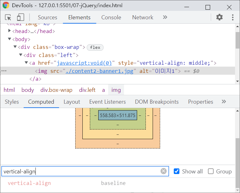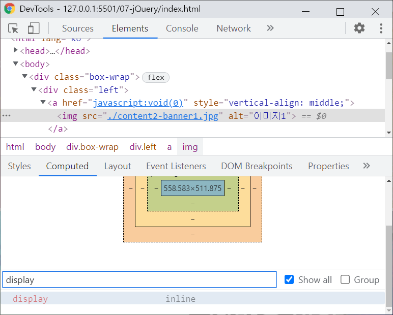 <img>태그가 inline속성을 가진것을 볼 수 있다.