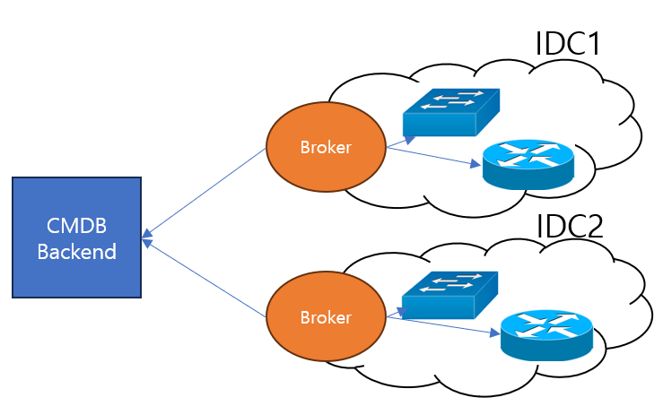 IDC 가 크게 2개로 운영되고 있었는데, 시범적 운영을 위해 각 IDC 를 다른 형태로 Broker 를 운영하였다. 단, 기본적인 데이터 수집 방식은 Ansible 과 TextFSM 을 이용한 수집 방법을 활용 하였다.