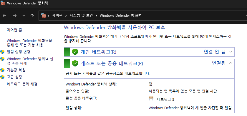 PC 는 PC 내부의 리소스를 보호하기 위해 OS 자체에서 방화벽을 제어 할 수 있다.