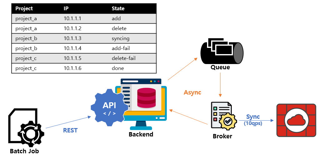 개발 타겟인 방화벽은 사내 클라우드 서비스를 목적으로 하고 있었다. 때문에 클라우드에서 생성한 서버를 대상으로 장비에 등록을 할 필요가 있었다. 이를 매번 사용자가 UI 를 통해 등록하면 번거롭고 생산성이 떨어지게 된다. 따라서 서버 생성시 자동으로 방화벽에 관련 IP가 등록되도록하는 방안을 마련했다.