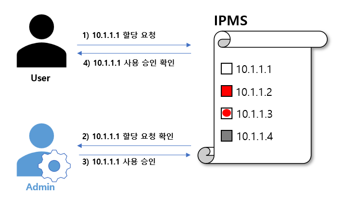 IP 자체에 대한 데이터 관리에 앞서, IP를 누구에게 어떤 용도로 할당을 했으며, 해당 IP 는 어떤 리소스에서 사용중인지에 대한 메타 정보 관리가 더 시급했다. NE와의 논의 끝에, IP 사용 신청과 IP 사용 승인기능을 나눠 IP 할당에 대해 좀 더 타이트하게 관리 해 보자는 의견이 제시되었다.