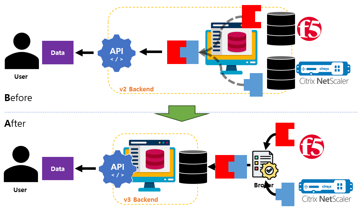 기존에는 F5와 Netscaler 데이터를 장비에서 관리하는 형태 그대로 DB 담아두고, API 에서 Call 할 경우 관련 데이터를 수집해 추상화하여 전달하였다. v3 로 변경되면서 데이터 추상화를 먼저 진행하였고, 각 장비에서 발생한 데이터는 Backend 에서 관리하는 데이터 형태에 맞도록 변경하여 전달하여 Backend 에서는 데이터를 전처리할 필요성이 없어졌다. 또한 CMDB 에서 진행했던 계층적 데이터 형태 구조를 답습하여 하위 계층 데이터에 대한 검색을 할 수 있도록 변경하였다.
