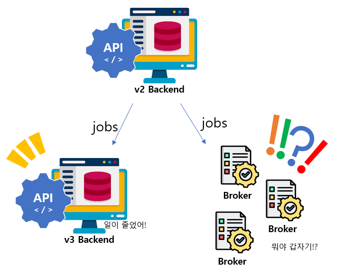 팀내에서는 이미 RabbitMQ 를 이용한 MQ 비동기 구조를 갖고 있는 일부 서비스들이 존재하고 있었다. (ex: CMDB) 따라서 해당 인프라를 그대로 활용하는 방안으로 진행하기로 하였다.
