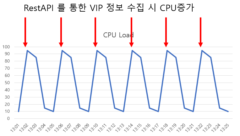 앞서 이야기 한바와 같이 VIP 상태 수집시 CPU Load 가 많이 올라갔다. 하지만 원래 많이 올라갈 만한 것이 아니다. 왜냐하면 VIP 의 모든 정보를 가져올 필요가 없기 때문이다. 하지만 기존 버전에서는 모든 정보를 한꺼번에 가져오는 Logic 으로 구현되어 있었기 때문에 이러한 이슈가 발생을 한 것이다.