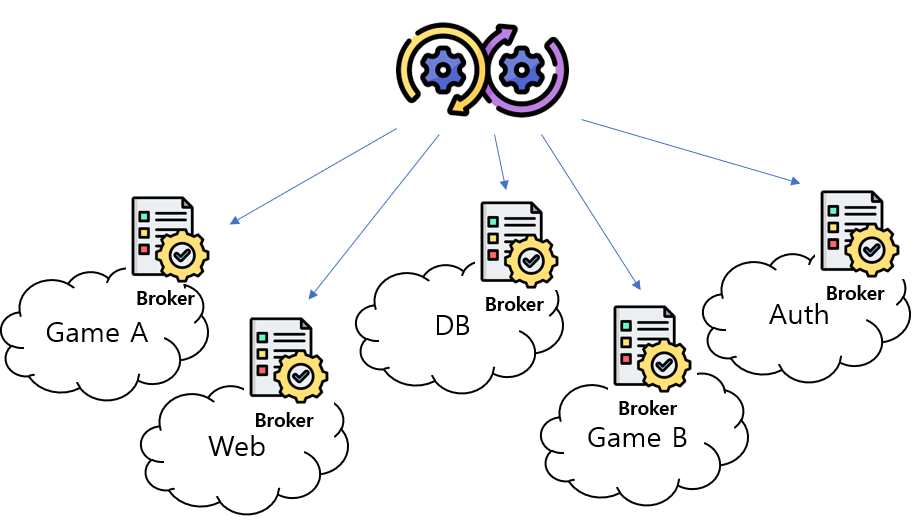 회사는 서비스망을 논리적으로 분할하여 사용하고 있었고, 각 논리적 분할된 망내 LB 가 존재하였기 때문에 관리되는 LB 의 수 만큼 Broker 를 관리하게 되었고, 결국 배포 자동화까지 진행하게 되었다.