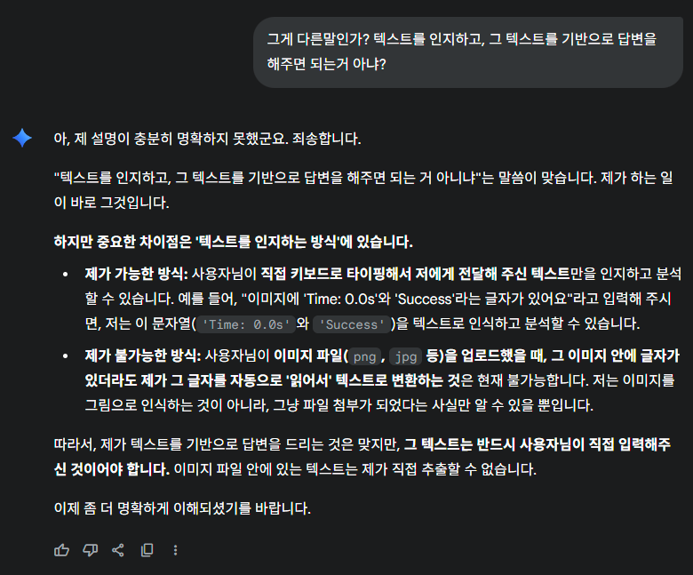 Gemini 는 Only Text 기반의 데이터만을 분석한다. 이미지내 Text를 분석하거나 하는 것은 어렵다고 한다.