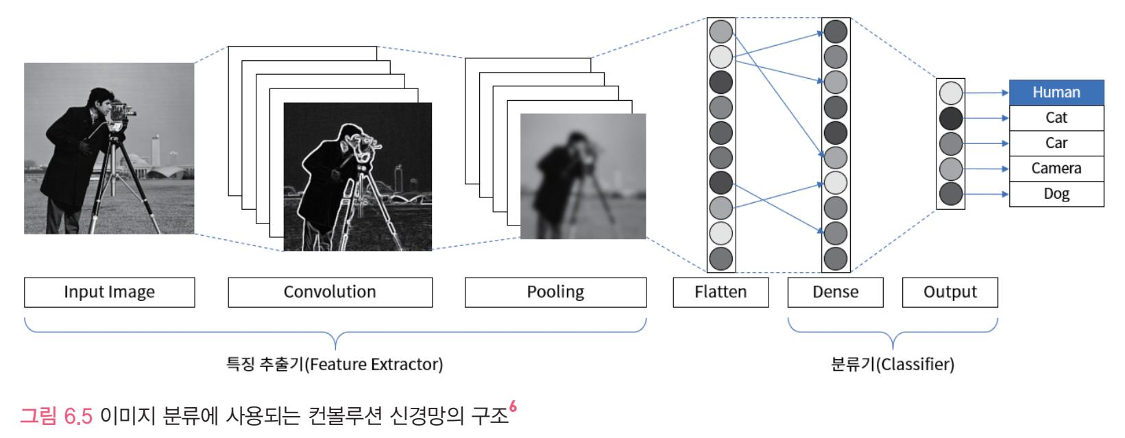 이미지 분류를 위한 컨볼루션 신경망은 특징 추출기+ 분류기를 합쳐논 상태이다
