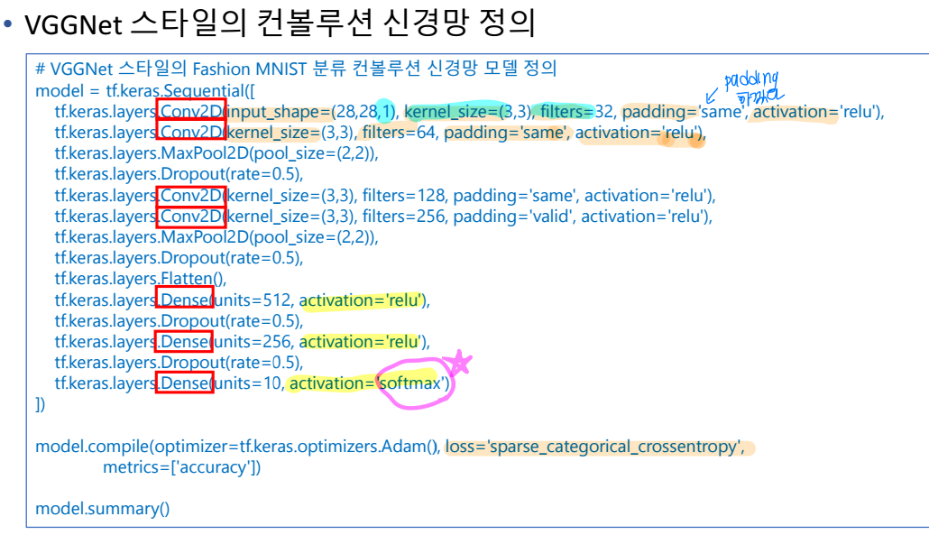 # Fashion MNIST 분류 컨볼루션 신경망 모델 정의