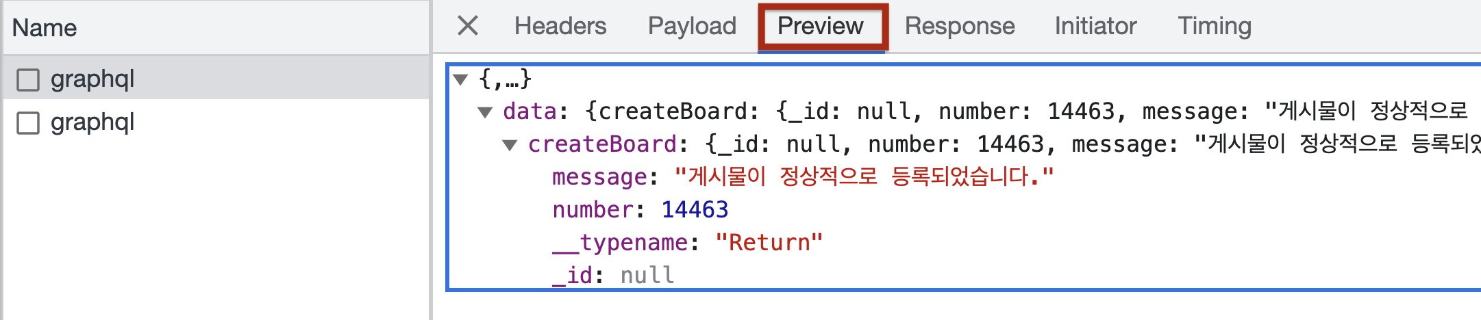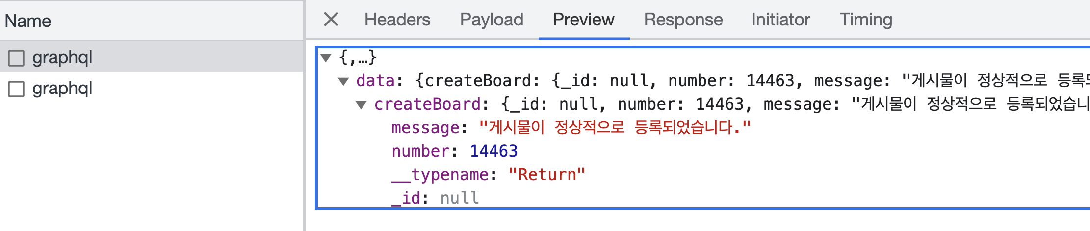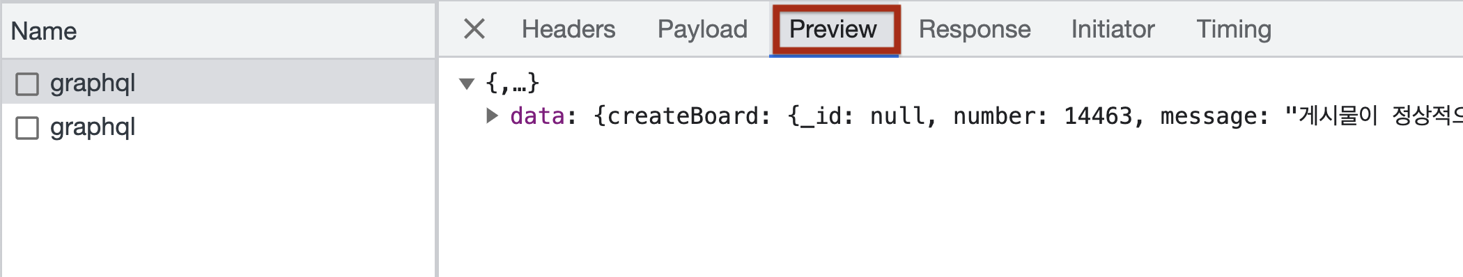 지금은 graphql을 통해 요청을 보내고 있기 때문에 graphql과 관련된 네트워크 통신이 보인다.
