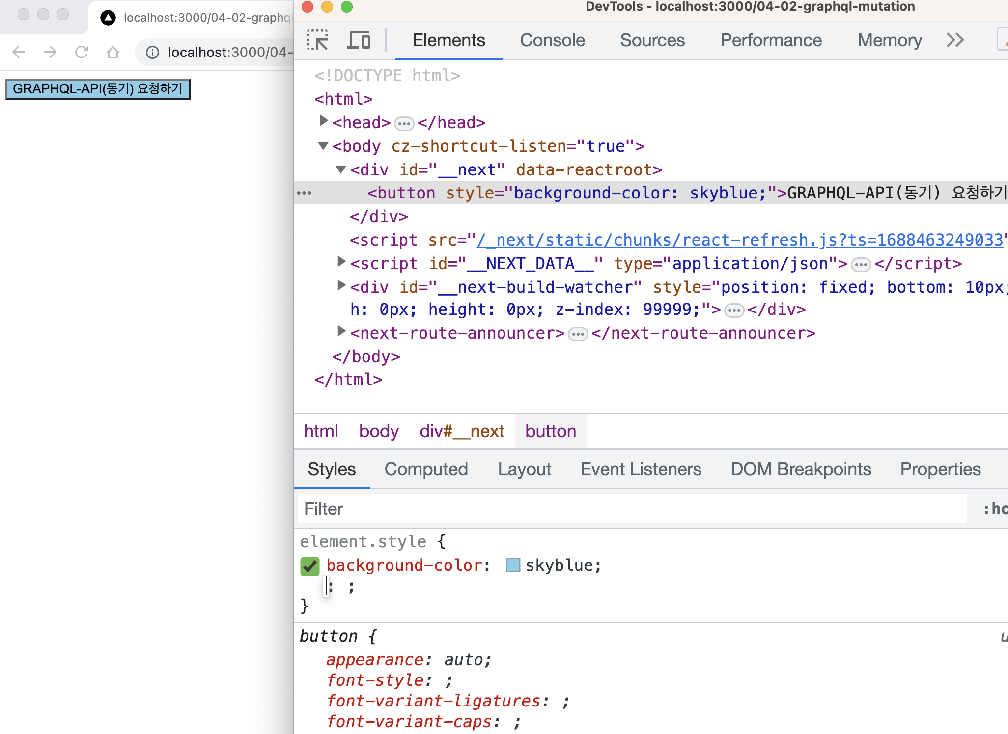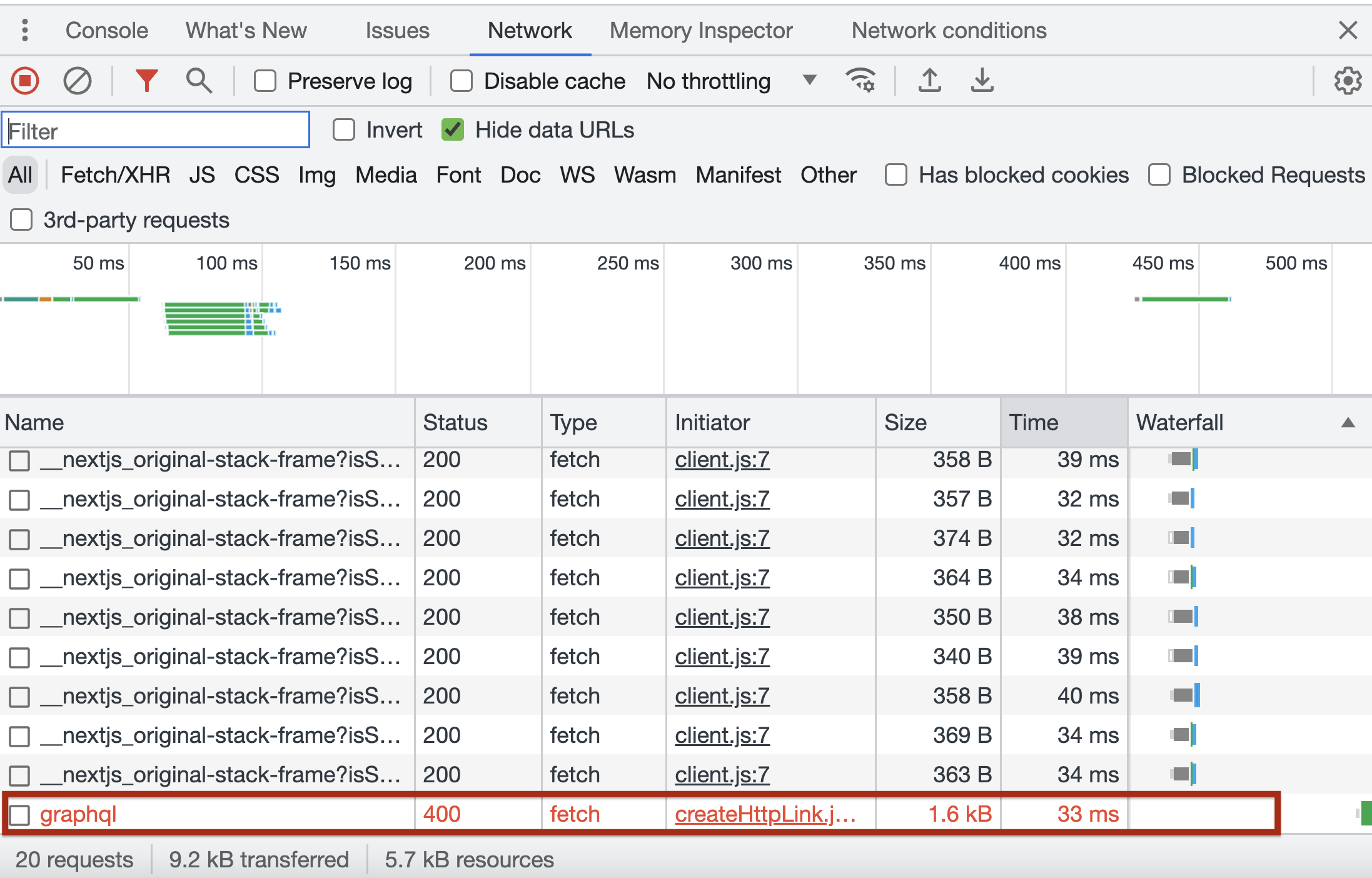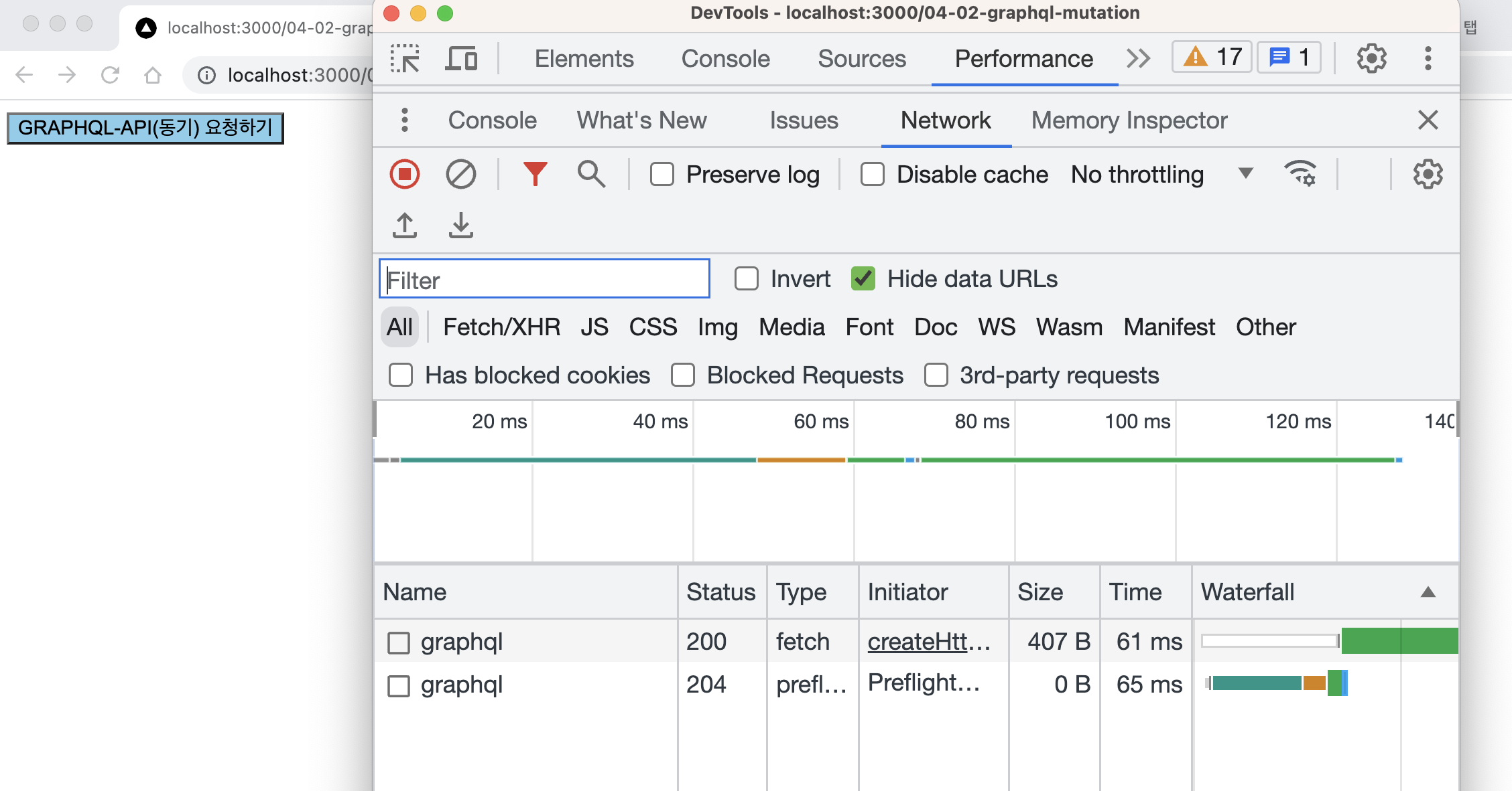 지금은 graphql을 통해 요청을 보내고 있기 때문에 graphql과 관련된 네트워크 통신이 보인다.