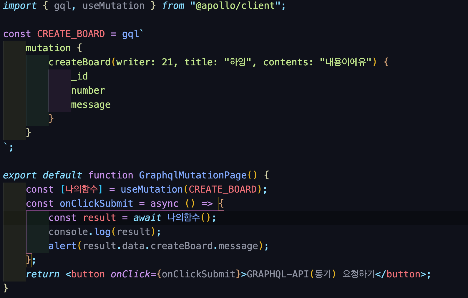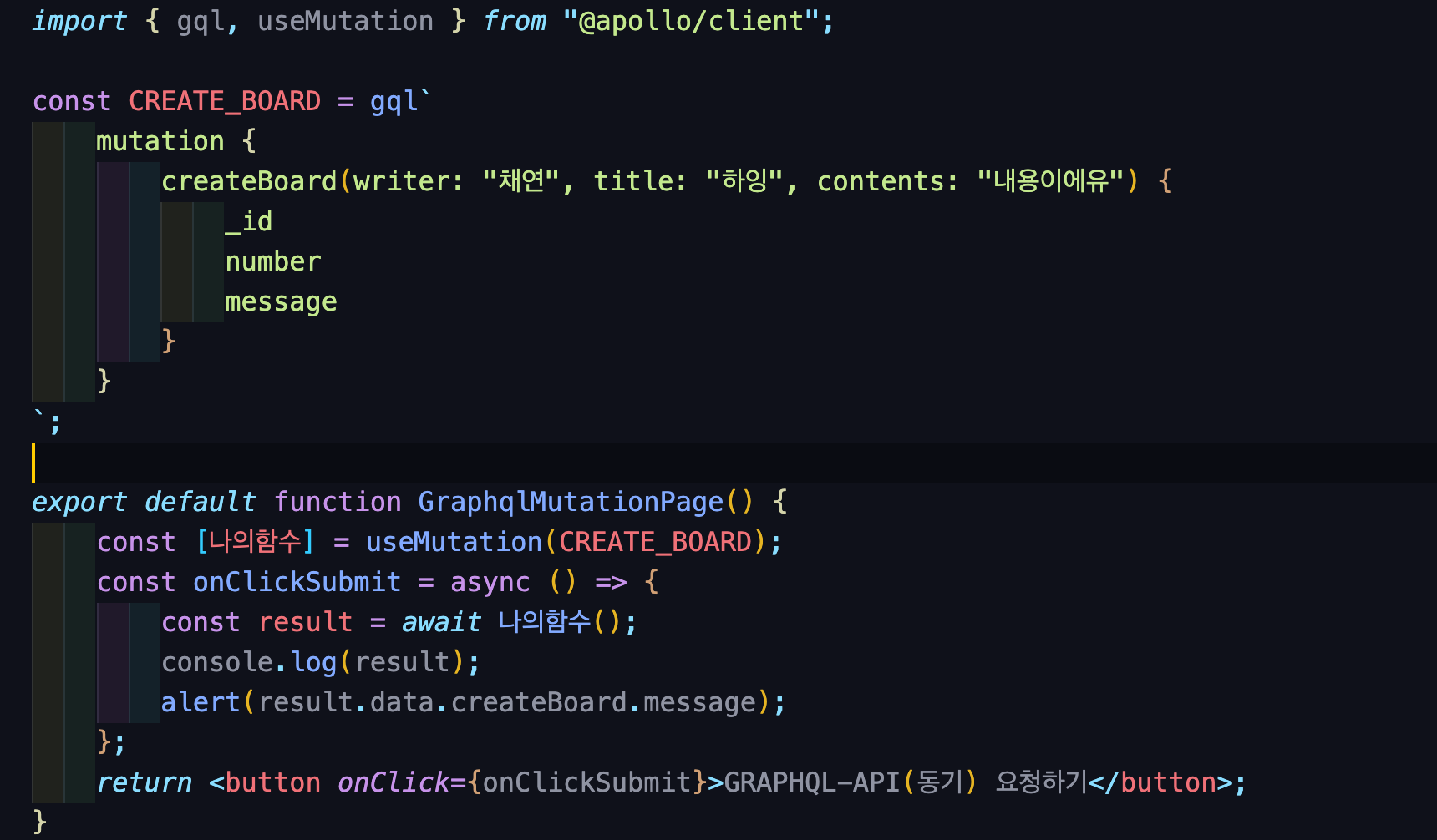 본 코드는 graphql을 통해 클라이언트에서 서버통신을 하는 코드를 바탕으로 작성되었다!