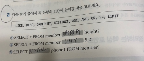 ORDER BY: 결과가 출력되는 순서를 조절. WHERE절 다음에 나와야 함.