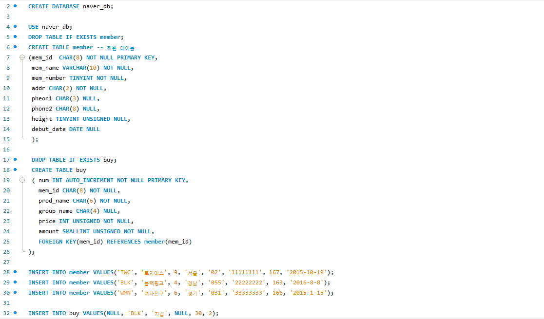 숙제: market_db의 회원 테이블(member) 생성하고 데이터 입력 후 인증하기