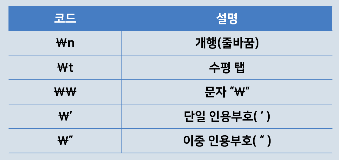 : 프로그래밍할 때 사용할 수 있도록 미리 정의해둔 문자 조합
