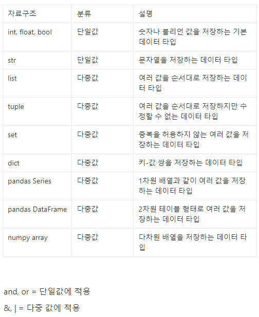 논리연산자 (and,or,not)과 비트연산자(&,|)는 다름