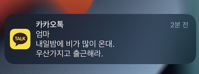 가족의 소중함을 더욱 느끼고 있다. 혼자 남겨진 방안에서 카톡을 받았을 때는 짠했다. 이번 주는 본가에 꼭 내려가야 겠다고 생각했다.