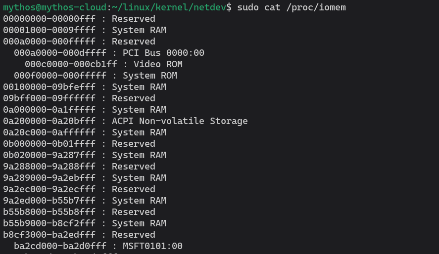 가상 메모리 시스템 (TLB, page tables, etc.) 은 가상 주소를 CPU 물리 주소로 변환하게 된다. 이러한 주소는 phys_addr_t 혹은 resource_size_t 와 같은 형태로 저장된다. 커널은 register 와 같은 장치의 자원을 물리적 주소로 관리한다. 이러한 주소는 /proc/iomem 혹은 /proc/ioports 에서 확인 가능하다.