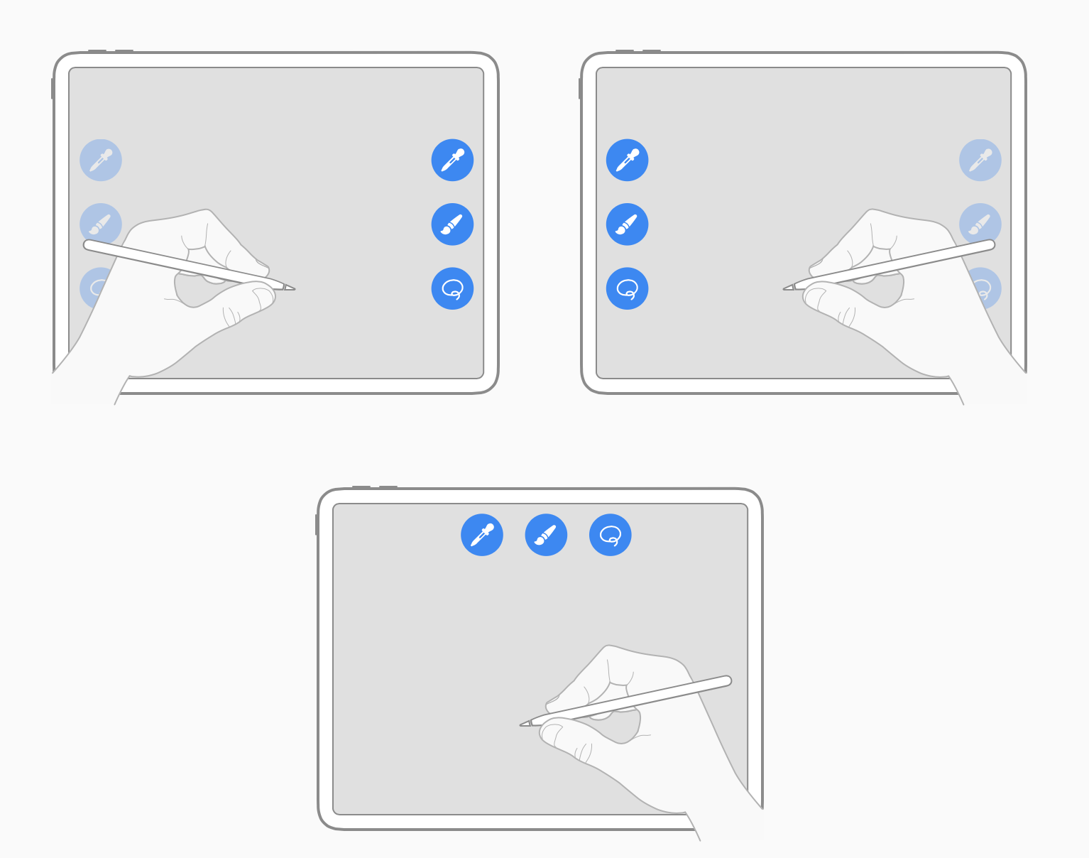 예를들어 손가락으로 제어를 상호작용 할 때 애플 펜슬로의 전환을 필요로 하지 않습니다.