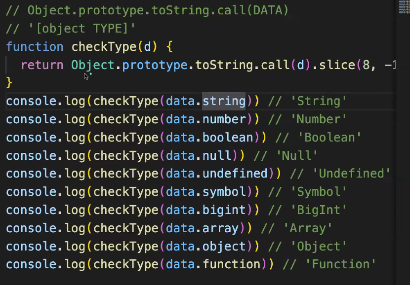 ↳ 참고로 slice(8, -1) 덕에 console에 어떤 데이터 타입인지 깔끔하게 뜬다. (스스로 시도해보기!)